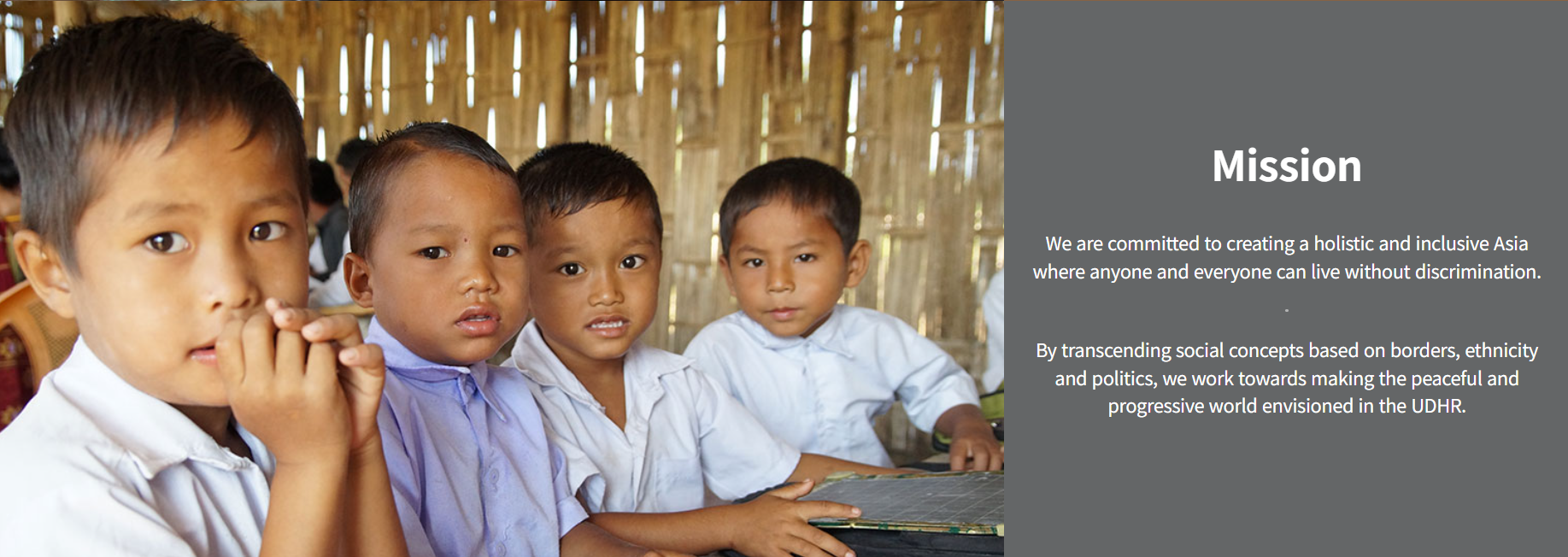 By transcending social concpets based on borders, ethnicity and politics, we work towards making the peaceful and progressive world envisioned in UDHR.